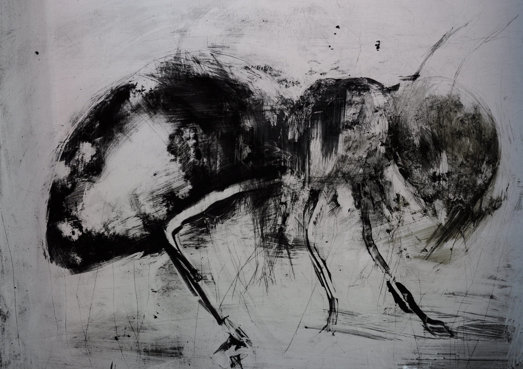 Dans ce monde aux aguets, immobile ; entre brouillard et indifférence, Vincent Fortemps se bat. Il sort les griffes de ses outils, il fouille la terre des souvenirs, il gratte la matière pour lui faire rendre gorge